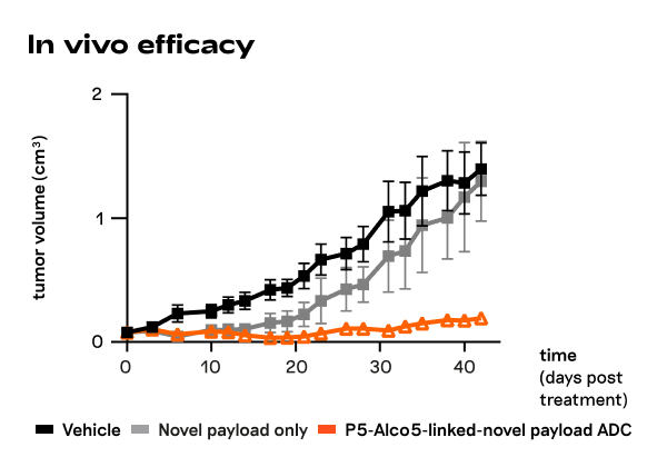 Our Alco5 Platform enables stable antibody conjugation of previously inaccessible payload classes, including various cytotoxins and protein degraders – unlocking novel MoAs while preserving favorable ADC properties properties.