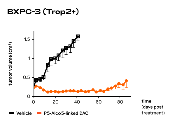 Leveraging the P5 technology, our proprietary Tubutecan Platform enables stable, high DAR 8 conjugation of potent topoisomerase-I inhibitors with optimized on-target delivery and reduced off-target toxicity – without compromising ADC properties.