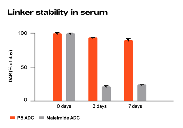 P5 enables superior linker stability in serum compared to standard maleimide-based linker systems.
